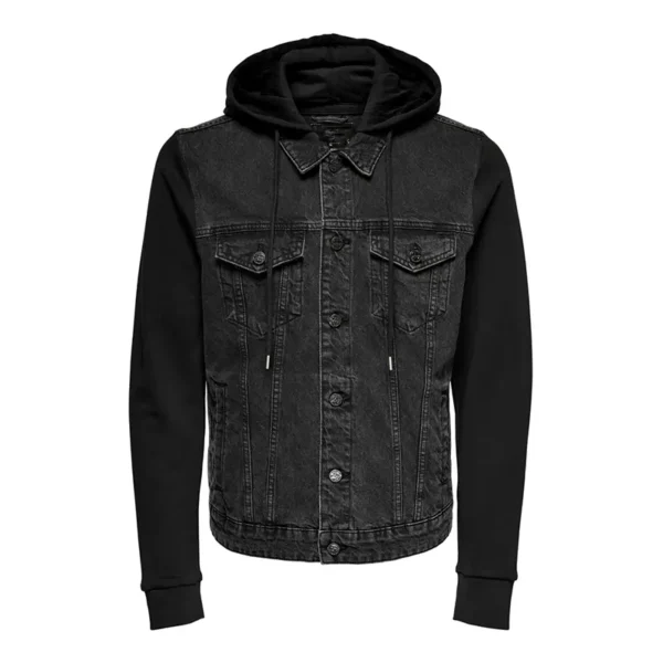 Material: Denim/ Fleece Inner: Viscose Lining Closure: Buttoned Closure Collar: Hooded Collar Cuffs: Rib-knitted Cuffs Color: Black