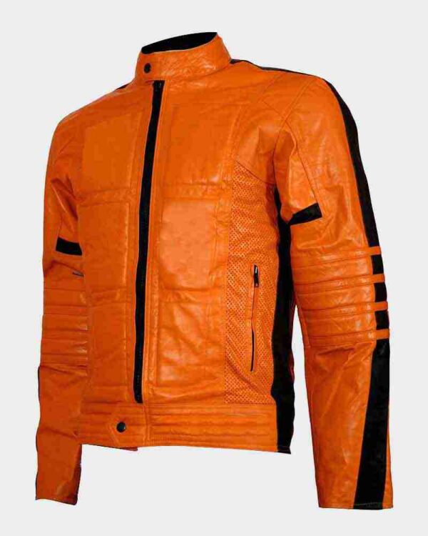 Mens Slim Fit Orange Padded Biker Leather Jacket