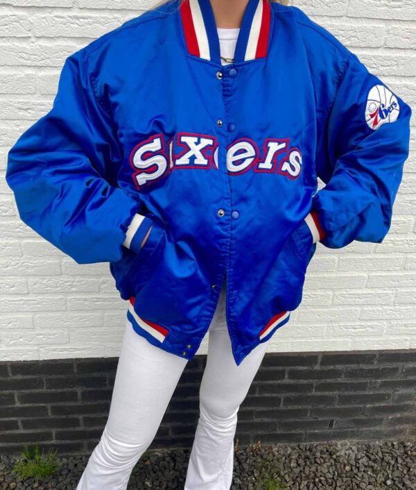 Inspired By: Basketball team Philadelphia 76ers Material: Satin Gender: Suitable for All Genders Color: Royal Blue Closure: Snap Tab Buttoned Front Closure Collar: Classic Rib-Knit Collar Cuffs: Rib-Knitted Cuffs Logo: Team logo on front Pocket: Two Outside pocket Inner Lining: Smooth and Luxurious Hemline: Rib Knitted Hemline Sleeves: Long and fitted Fine quality Stitching