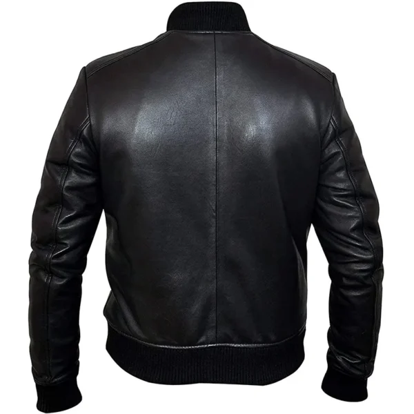 Mens Slim Fit Black Leather Bomber Jacket