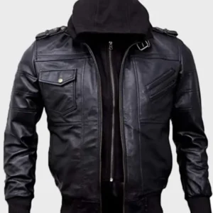 Material: Real Leather Inner: Viscose Lining Closure: Zipper Closure Collar: Hooded Collar Cuffs: Rib-Knitted Collar Color: Black