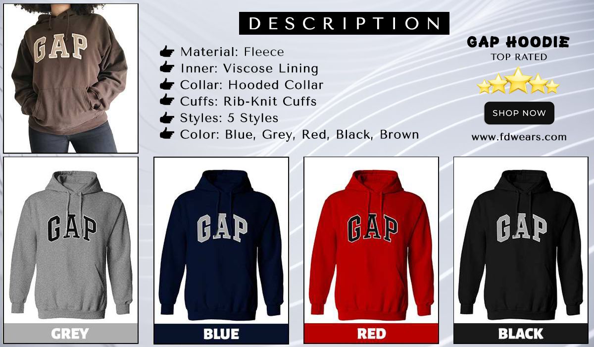 Who wants to wear a tight jacket or bulky coat when they can simply put on a casual hoodie and rock their appearance on the way? The FDwears presents Unisex Brown GAP Hoodie which is the new Black that you need to get your hands on ASAP. The displayed GAP Brown Hoodie is the impersonation of the outfit taken from the original item. This hoodie is one of those attires that never go out of trend.