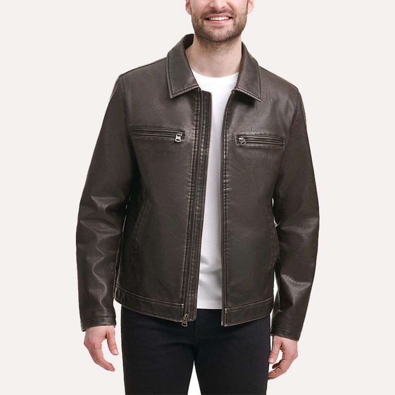 Joseph Shirt Style Collar Dark Brown Faux Leather Jacket