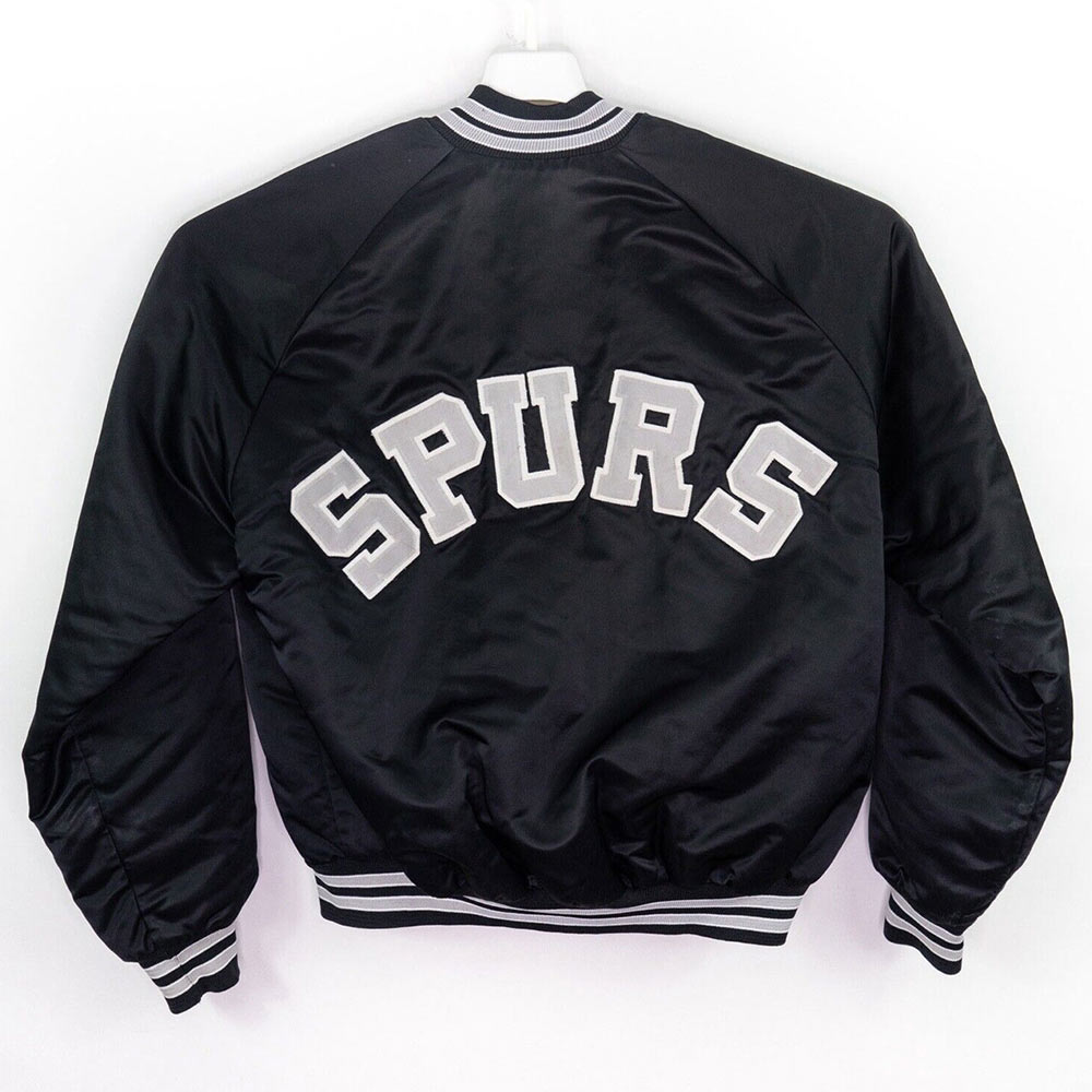 Inspired by: An American basketball team San Antonio Spurs Material: Satin Color: Black Collar: Rib-knitted style collar Front: Buttoned closure Inner: Soft viscose lining Cuffs: Rib knitted cuffs Sleeves: Long and fitting Fine quality stitching Pockets: Two side waist pockets For both genders Logos on chest and back