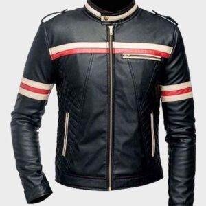 Red And White Striped Mens Black Biker Jacket