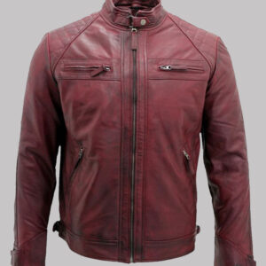 Material: Real Leather Inner: Viscose Lining Closure: Front Zipper Closure Collar: Snap-tab Collar Cuffs: Snap-Tab Cuffs Color: Burgundy