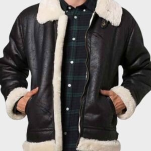 Mens Faux Shearling B3 Flight Winter Leather Jacket