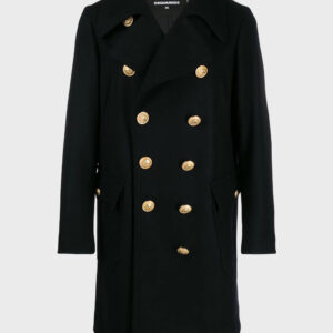 Mens Blue Double Breasted Wool Coat
