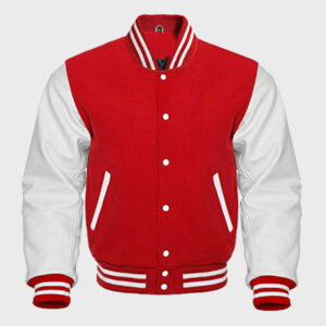 Material: Fleece / PU Leather Sleeves Inner: Viscose Lining Closure: Front Buttoned Closure Collar: Rib-knitted Collar Cuffs: Rib-knit Cuffs Color: Red and White