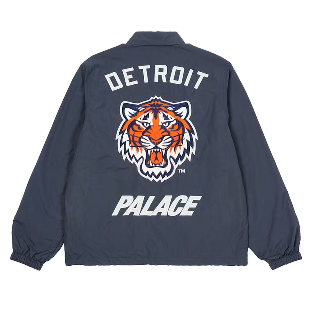 For both genders Inspired by baseball team: Detroit Tigers Material: Polyester Color: Navy Inner: Viscose lining Collar: Shirt style Front: Snap tab closure Sleeves: Long and fitted Cuffs: Elastic Pockets: Two slanted waist pockets, one inner pocket Hemline: Elastic Logo: Multiple logos are featured on front and back, “Detroit Palace” lettering on the back Good stitching