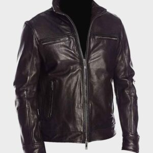 Material: Real Leather Inner: Viscose Lining Closure: Front Zipper Closure Collar: Erect Collar Cuffs: Open Hem Cuffs Color: Brown