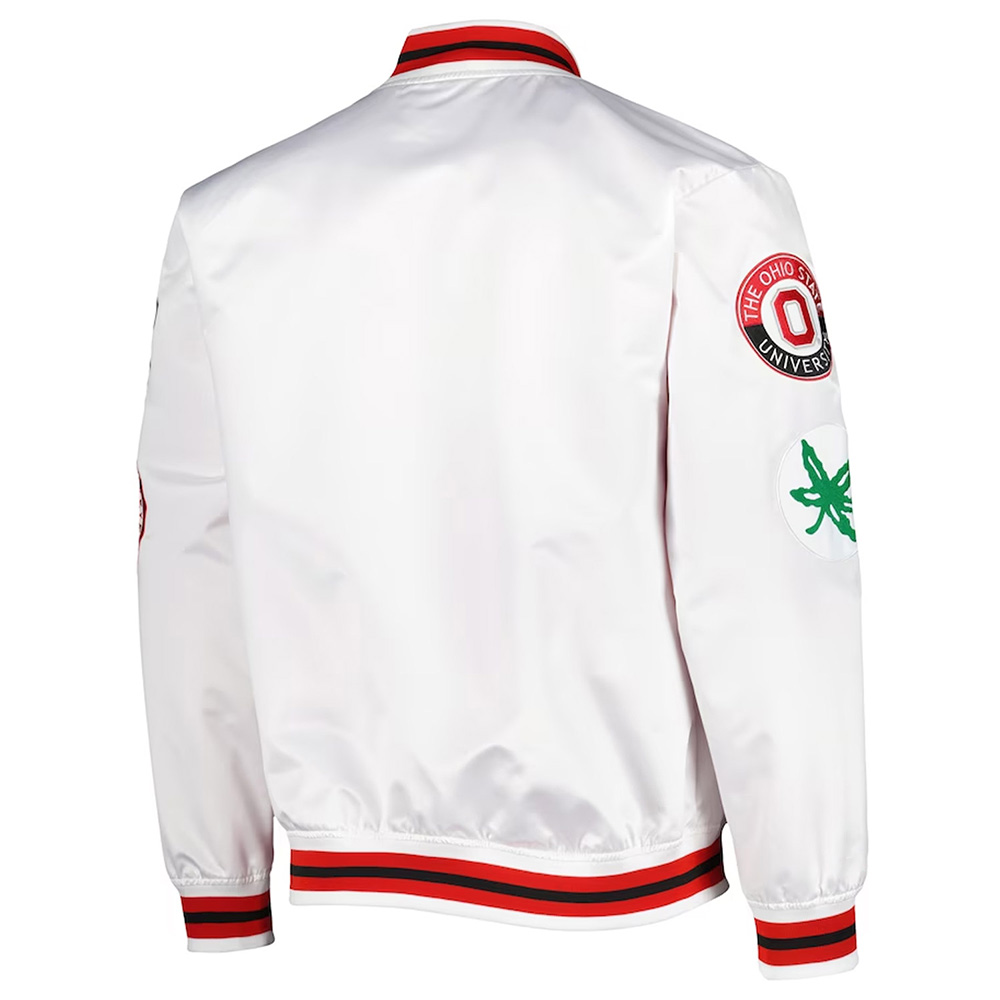 Ohio State Buckeyes City Collection White Varsity Satin Jacket