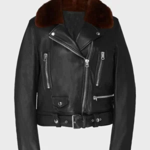 Material: Real Leather Inner: Viscose Lining Closure: Front Zipper Closure Collar: Shearling Collar Cuffs: Zipper Cuffs Color: Black