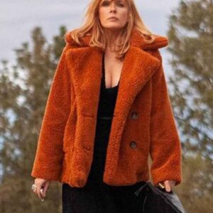 Material: Shearling Inner: Viscose Lining Closure: Front Buttoned Closure Collar: Notch Collar Cuffs: Fur Cuffs Color: Orange