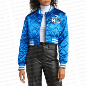 For both genders Inspired by the movie: Monster High 2 Worn by: Lagoona Played by: Lina Lecompte Material: Satin Inner: Viscose lining Color: Blue Collar: Ribbed Front: Snap tab closure Sleeves: Full and fitted Cuffs: Rib knitted Pockets: Two slanted pockets on the waist and one inner pocket Hemline: Ribbed Logo: Distinctive logo is featured on the chest Exclusive stitching
