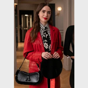 Emily in Paris S04 Lily Collins Red Leather Coat