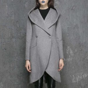 Women’s Asymmetrical Mid-Length Wool Coat with Hood