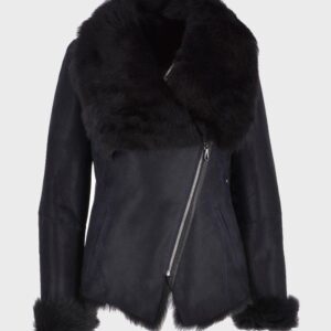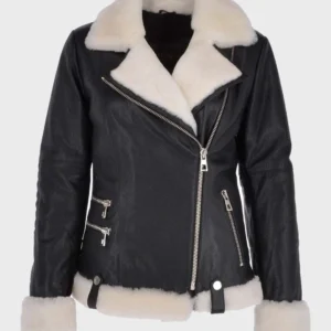 Womens Black Shearling Fur Leather Jacket