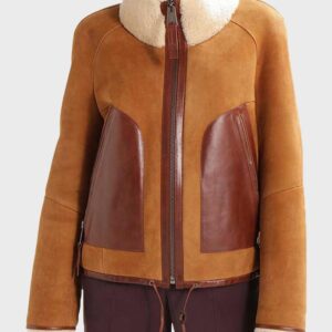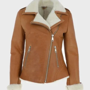 Womens Tan Brown Shearling Leather Jacket