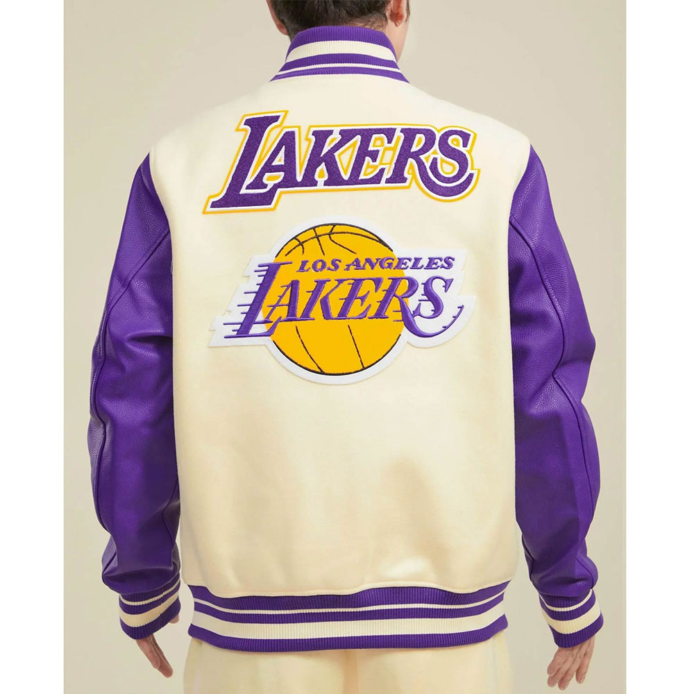 LA Lakers Retro Classic Rib Off White and Purple Varsity Jacket
