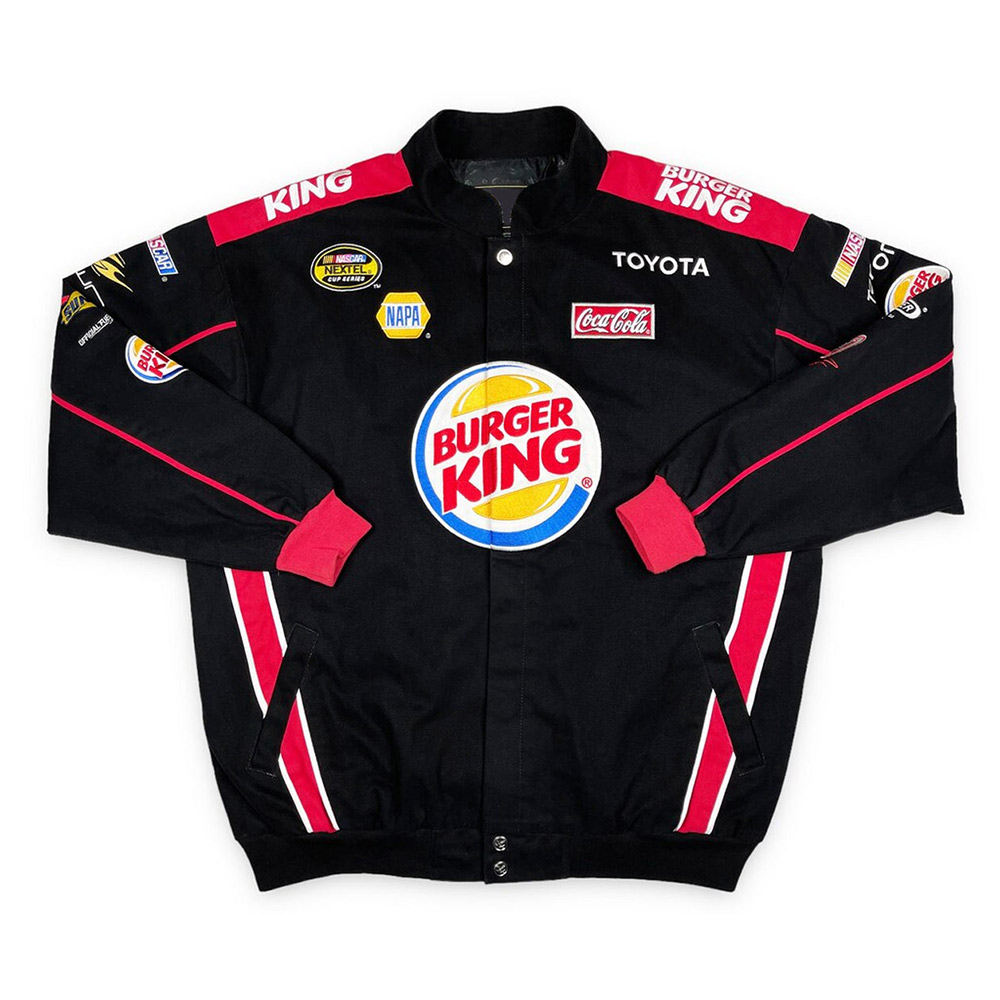 A fusion of style and comfort suitable for all genders, FDwears is introducing the Burger King Jacket. Embrace the spirit of speed with the black cotton exterior, adorned with the iconic Burger King Racing logo on the front, sleeves, and back. The full snap tab buttoned closure and rib-knitted collar, cuffs, and waistband offer a tailored fit, while the Viscose lining ensures a luxurious feel.