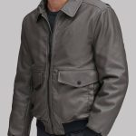 Grey Bomber Leather Jacket for Men’s