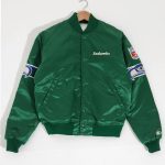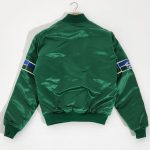 The collar has ribs and the fastening with snap-tab buttons is reminiscent of varsity jackets from the 20s and 30s. Its long sleeves come with the brand’s patches as well as the ribbed cuffs make the Seattle Seahawks 1990’s green jacket to fit well like a sports wear. The hemline has ribs that make it fit well and look neat all day long.
