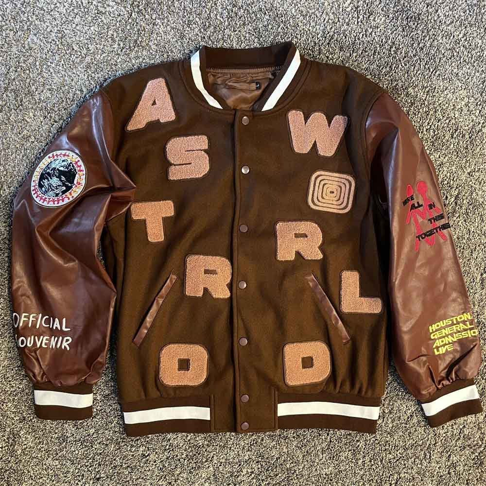 Astroworld Brown Letterman Varsity Wool/Leather Jacket