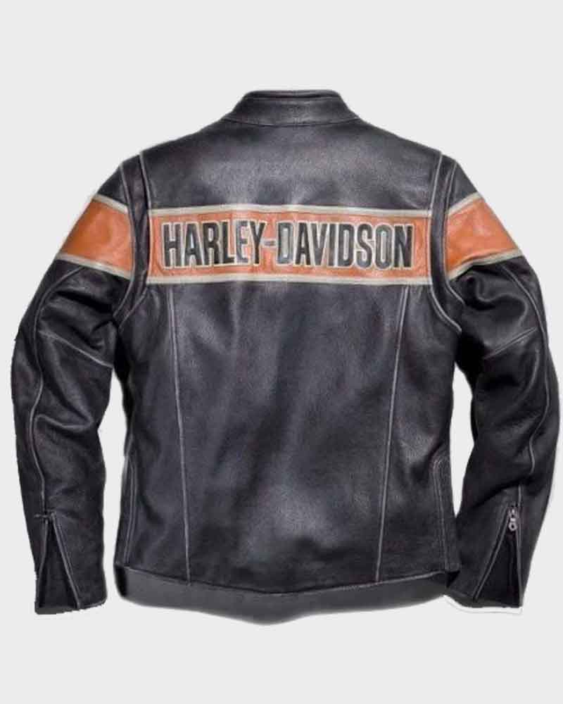 This Harley Davidson Victory Lane Leather Jacket is the production of top-quality real leather, and it features an inner stitched viscose lining to keep you relaxed. Its specifications comprehend an erected collar, zipped cuffs, Harley Davidson logo at the front and back, and front zip fastening.