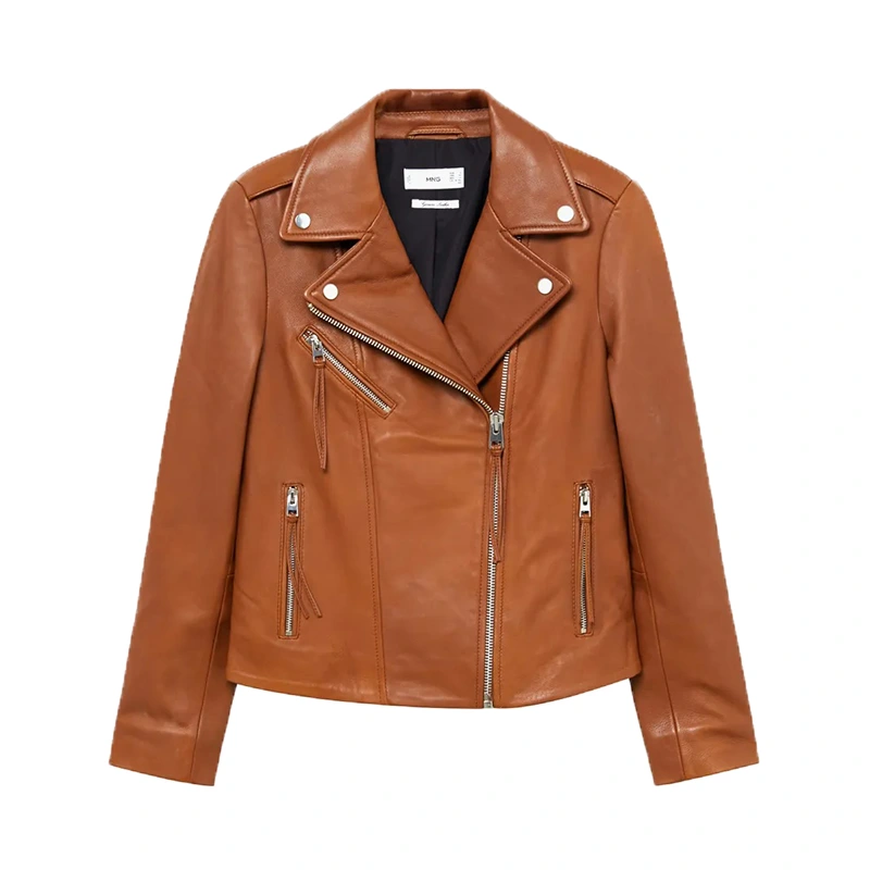 Heather Brown Zipper Biker Leather Jacket