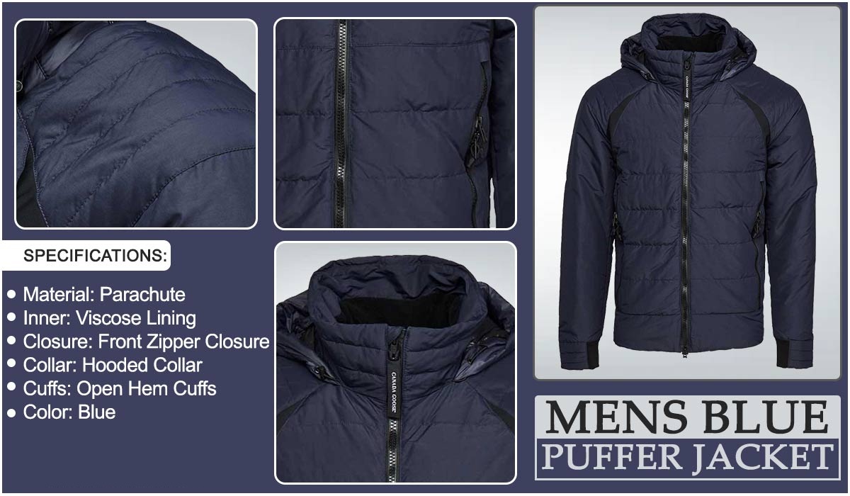 The suggested Mens Hooded Puffer Blue Jacket is the classification of the excellent quality parachute fabric.