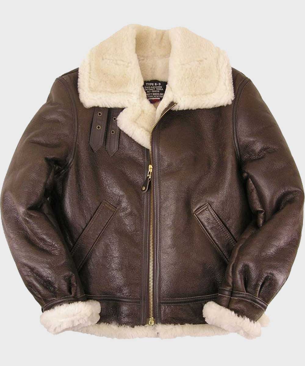 The indicated Men’s Sheepskin Leather Brown B3 Jacket is a composition of top-notch quality leather material. In addition, the jacket featured a comfy lining of viscose inside it, while the outside provides a front zip closure with a charming shearling collar. Besides, it accommodates full-length sleeves shearling cuffs, and the product is exclusively available in its marvelous Brown color.