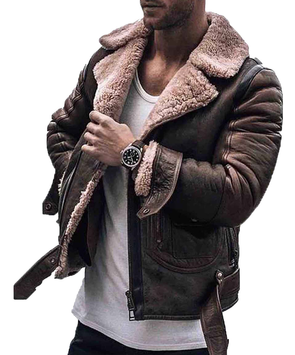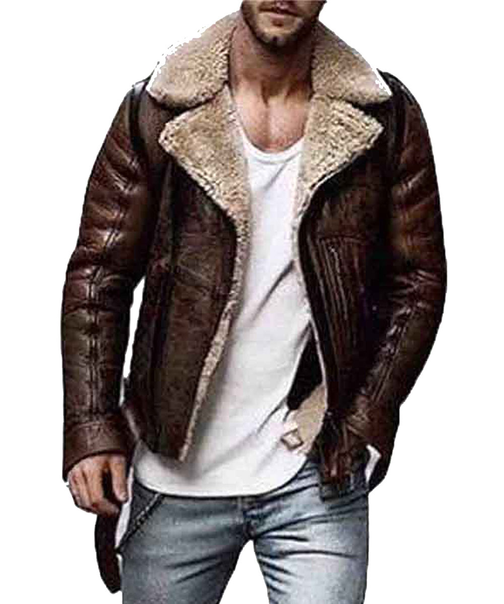 The presented Men’s Brown Shearling Distressed Leather Jacket is a production of superb quality original leather. Also, the jacket contains a soft lining of shearling beneath it, while the outside gives a front zip fastening with a lovely peak lapel shearling collar. Moreover, it accommodates full-length sleeves, buttoned cuffs, and the product is exclusively available in its marvelous Dark Brown color.