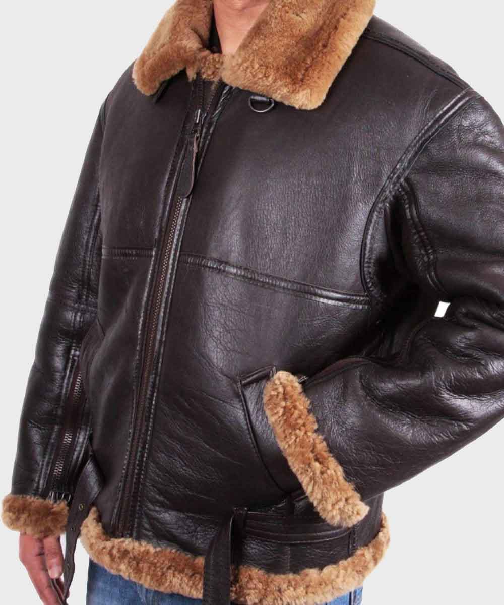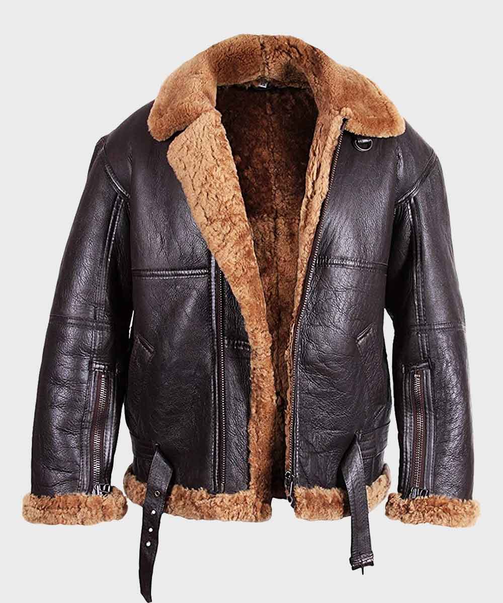 Brown Flying B3 Mens Aviator Sheepskin Shearling Leather Jacket