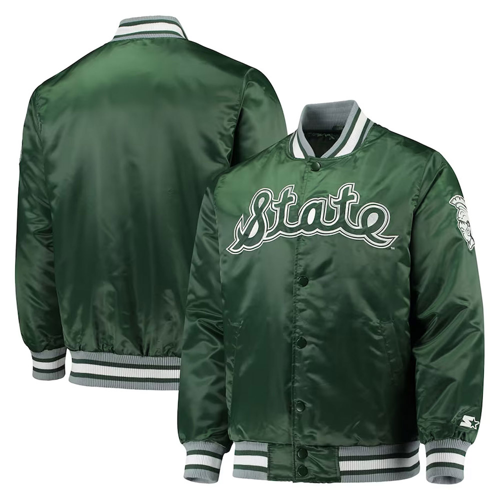 Starter Green Michigan State Spartans O-Line Varsity Full-Snap Satin Jacket