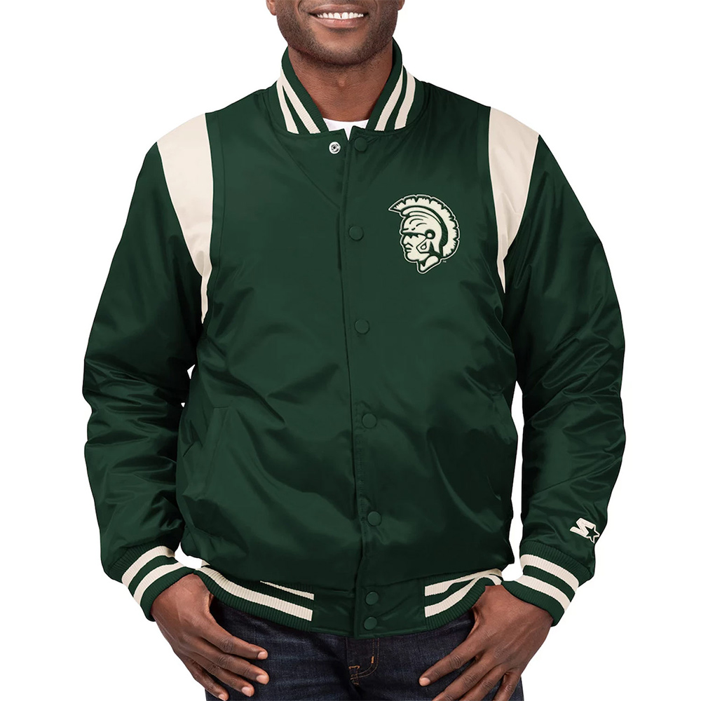 Starter Green Michigan State Spartans Teddy Varsity Satin Full-Snap Jacket