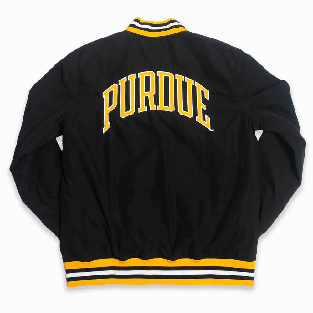 The standout element is the Purdue Boilermakers Vintage Pete logo proudly displayed on the front and back, adding a touch of collegiate charm. Elevate your style with this meticulously crafted Purdue Boilermakers Vintage Pete Black Jacket, combining fine craftsmanship with a nod to iconic sports heritage.
