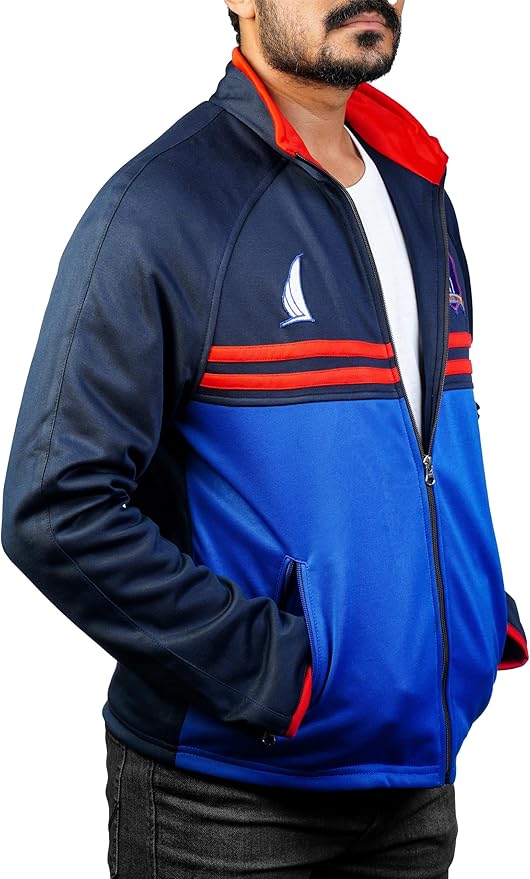 The indicated Ted Lasso Jason Sudeikis Track Jacket is a composition of excellent quality cotton polyester fabric. Further, its inner part comprises a smooth lining of viscose underneath it, while the outside provides a front zip closure with a charming stand-up style collar. Moreover, it accommodates full-length sleeves open hem cuffs, and the product is exclusively available in its luxurious Blue color.