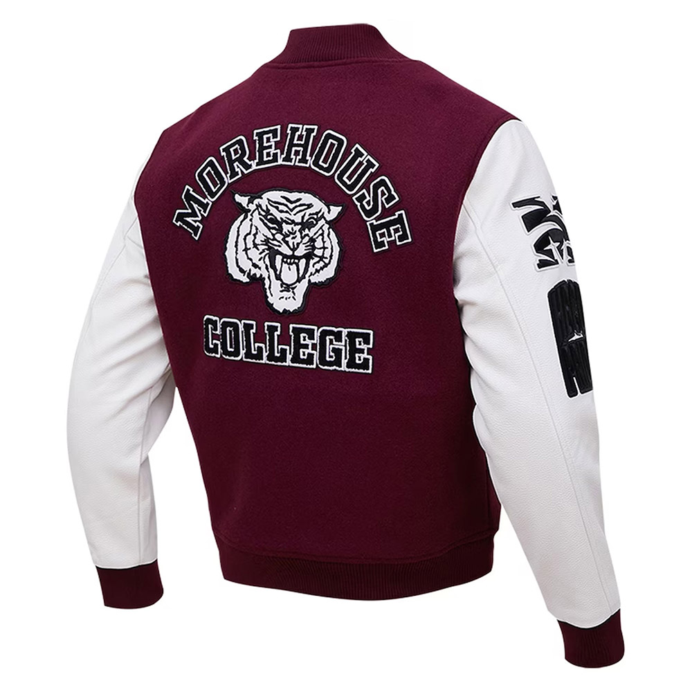 Morehouse College Tigers Wool/Leather Full- Zip Varsity Maroon Jacket