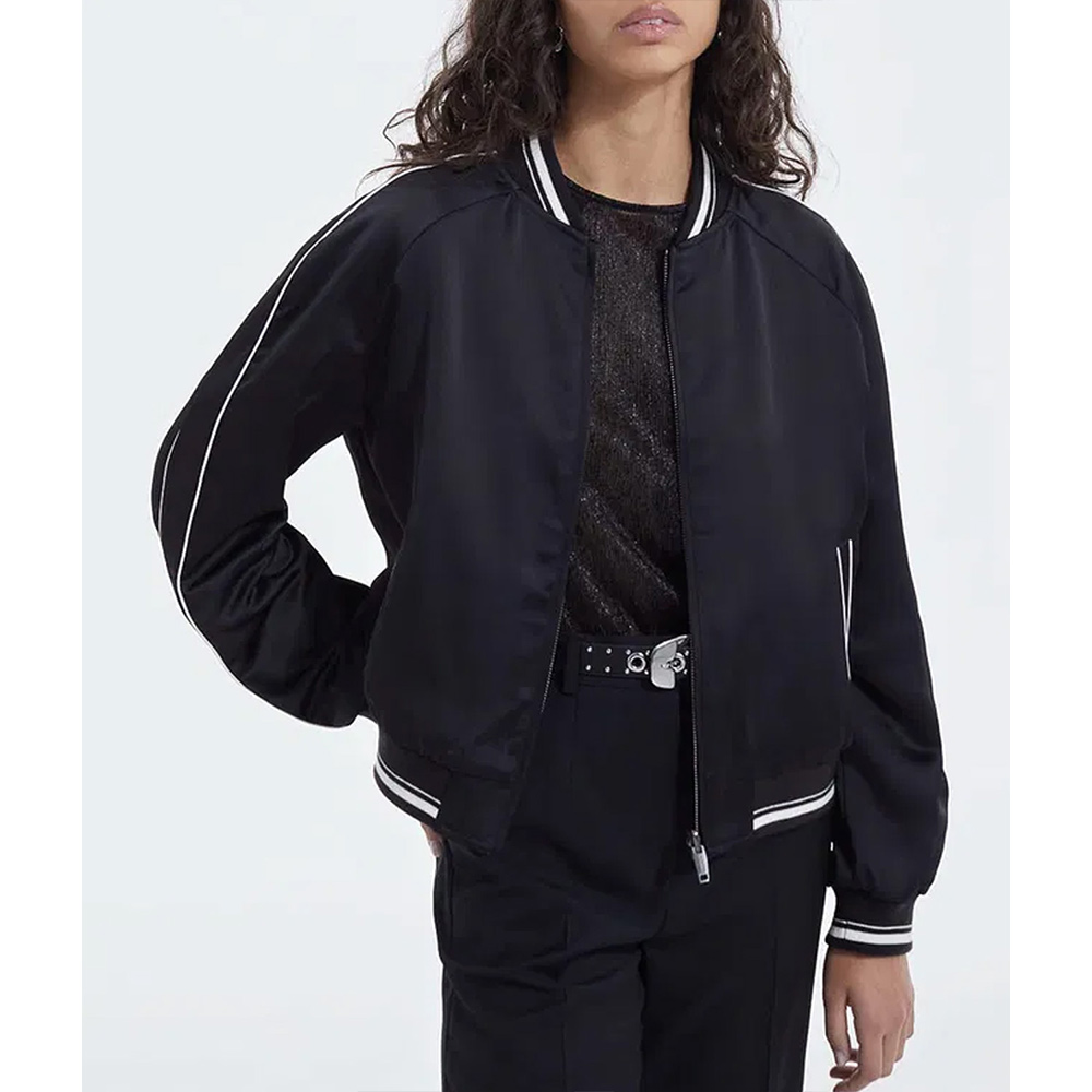 Jenna Ortega Wednesday Addams Black Cotton Bomber Jacket