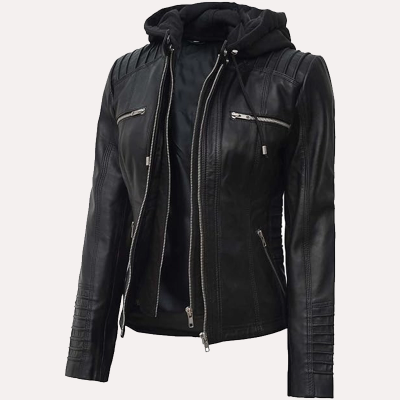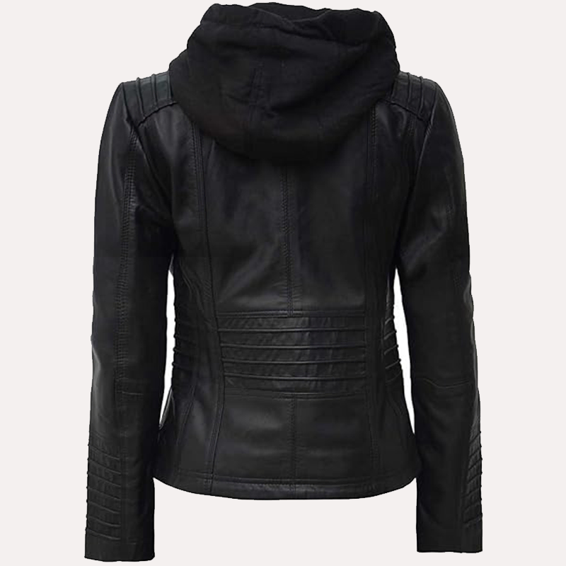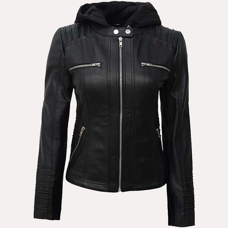 FDwears is presenting you the Women’s Black Hooded Leather Jacket, one of the sassiest outerwear to give you boldness and a new look. From its Black color to the unique design, each feature of it will blend well with any clothing you wear. Giving the jacket a more fantastic look is the bomber aspect of it that makes it worth wearing in the Winter season. Other than that, the jacket is also surely a great option to be worn as a motorcycle jacket as its heavy-duty fabric can protect you from a lot of injuries while giving you a beautiful appearance as you ride along.