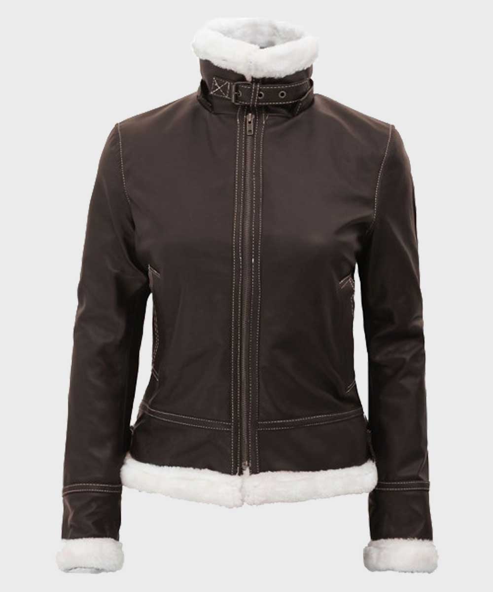 The presented Womens Dark Brown Shearling Leather Jacket is the production of excellent quality leather material.