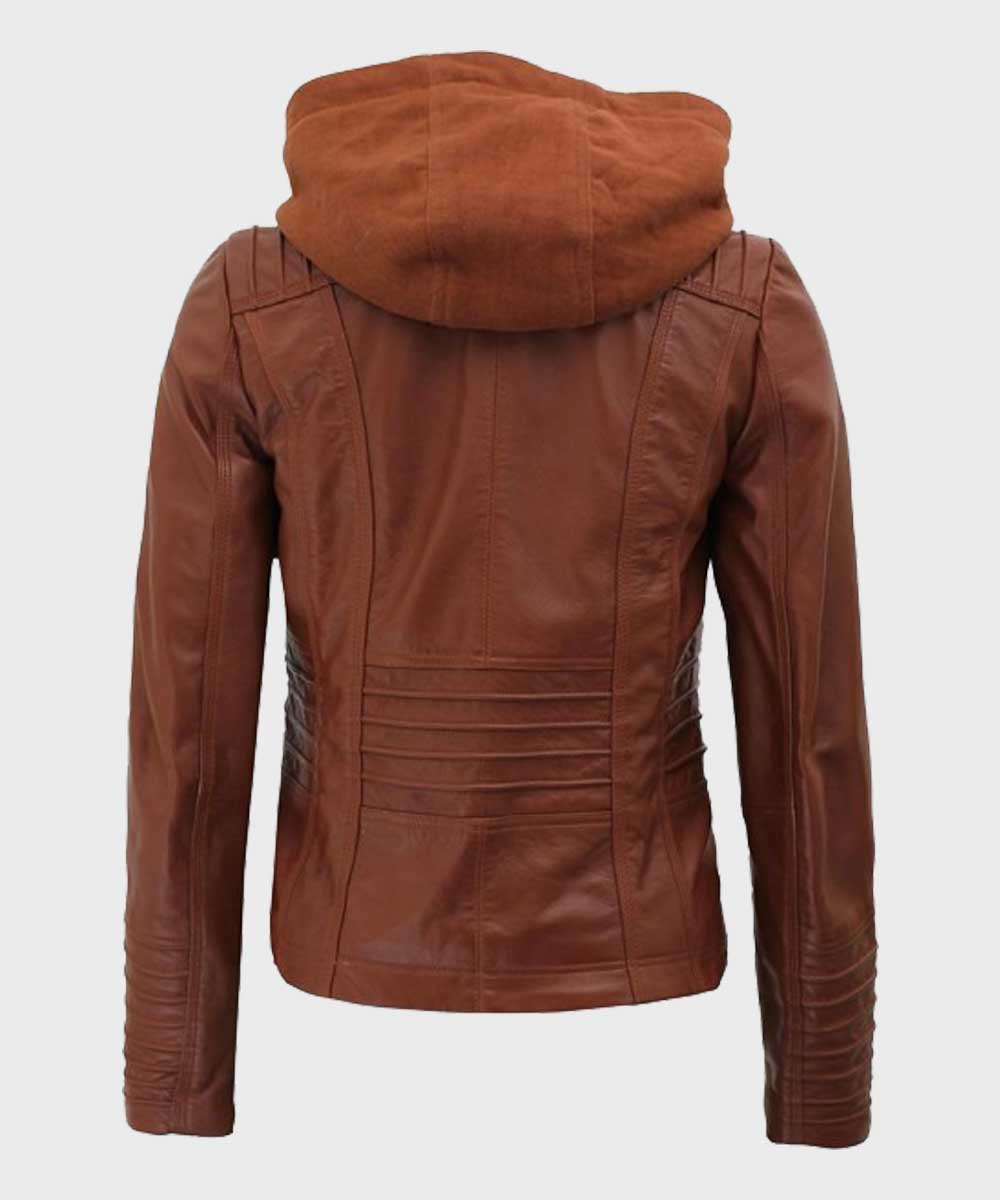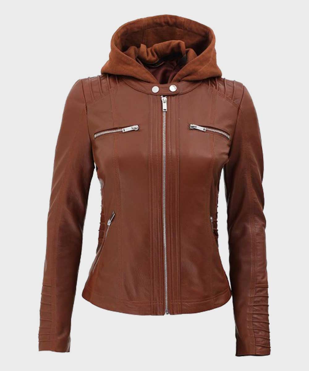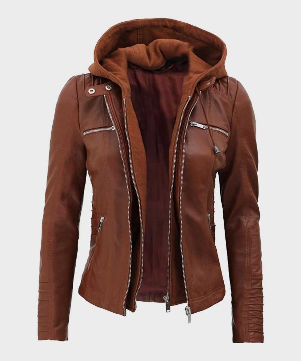 Brown Cafe Racer Women’s Biker Leather Jacket with Hood
