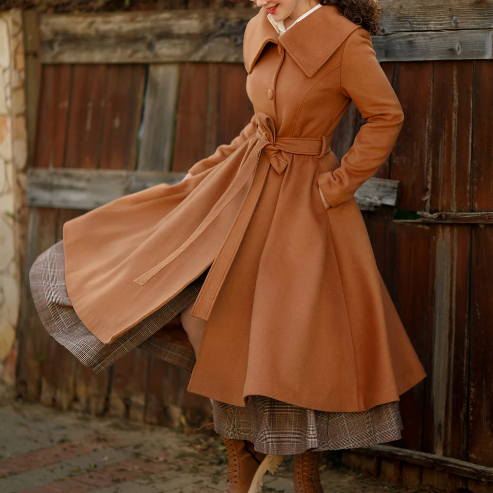 Womens Princess Maxi Swing Wool Belted Coat