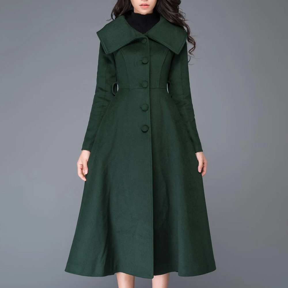Learn more about the Women’s Princess Wool Coat offered by FDwears and see why it is the ideal choice for the fashion-savvy woman who also appreciates comfort. This coat is made with quality wool and is perfect to wear when it gets chilly, it is a must have for your closet. Its green color boosts any outfit and also goes well with different types of clothes.