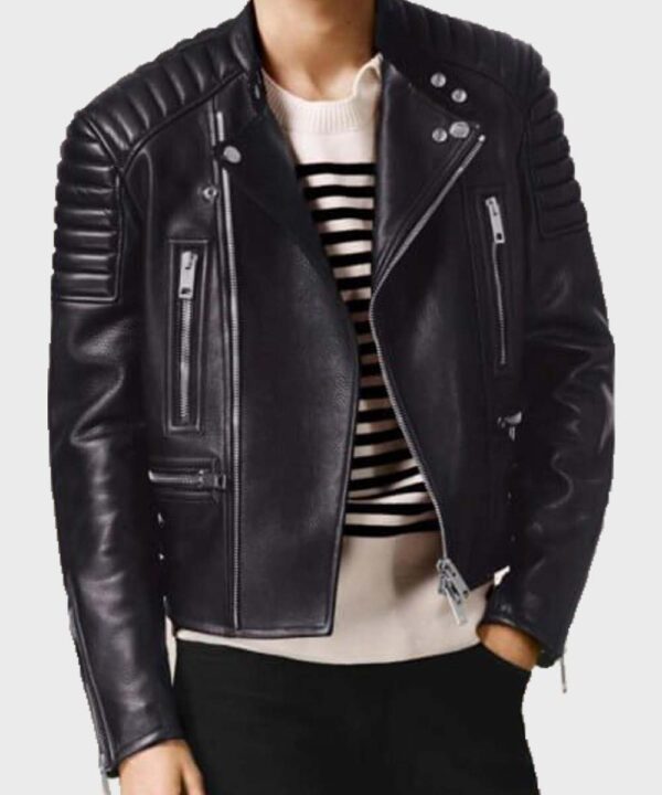 Material: Real Leather Inner: Viscose Lining Closure: Front Zipper Closure Collar: Snap-tab Collar Cuffs: Zipper Cuffs Color: Black